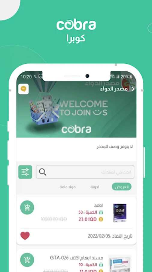 تطبيق كوبرا ، الخيار الأسهل لطلب الأوردرات من مذاخر العراق وبثلاث خطوات فقط ، بالإضافة الى أقوى العروض وأسرع تصفح لمتابعة توفر المنتجات أول باول