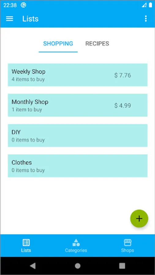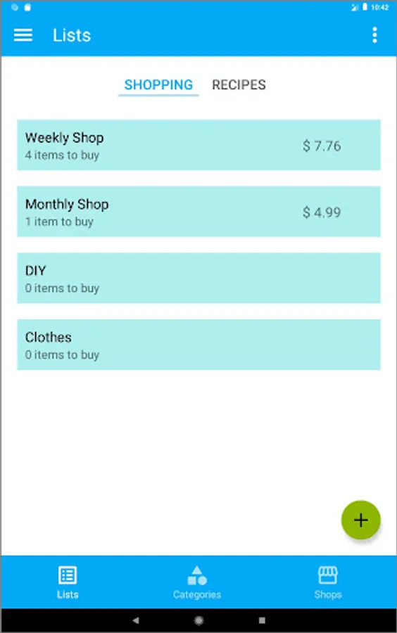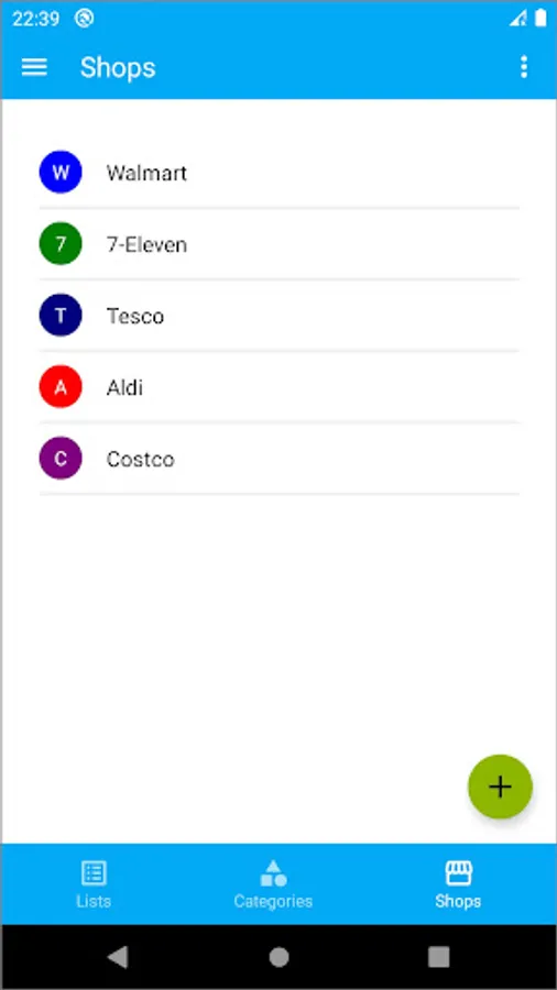 For more advanced users, create shops and categories and assign to items to filter and order your lists.