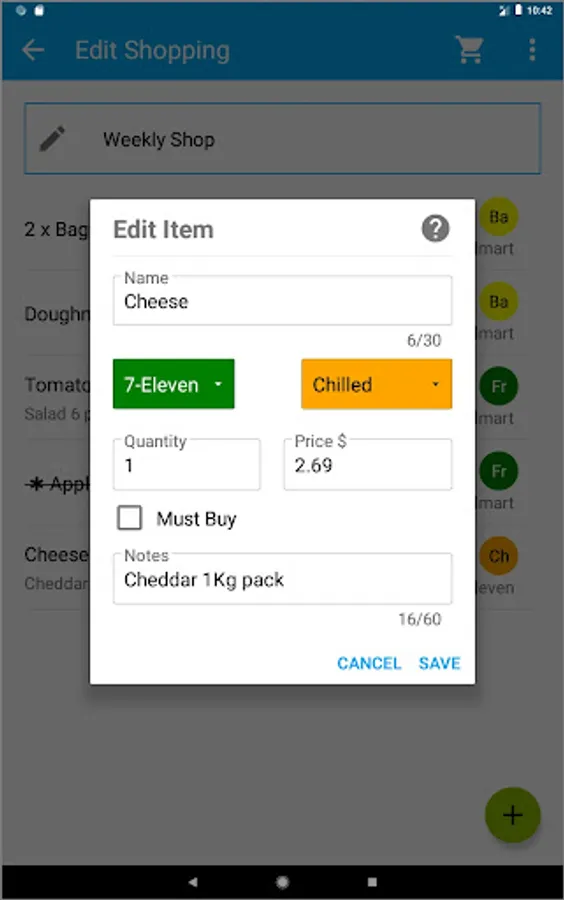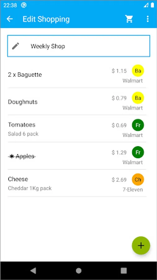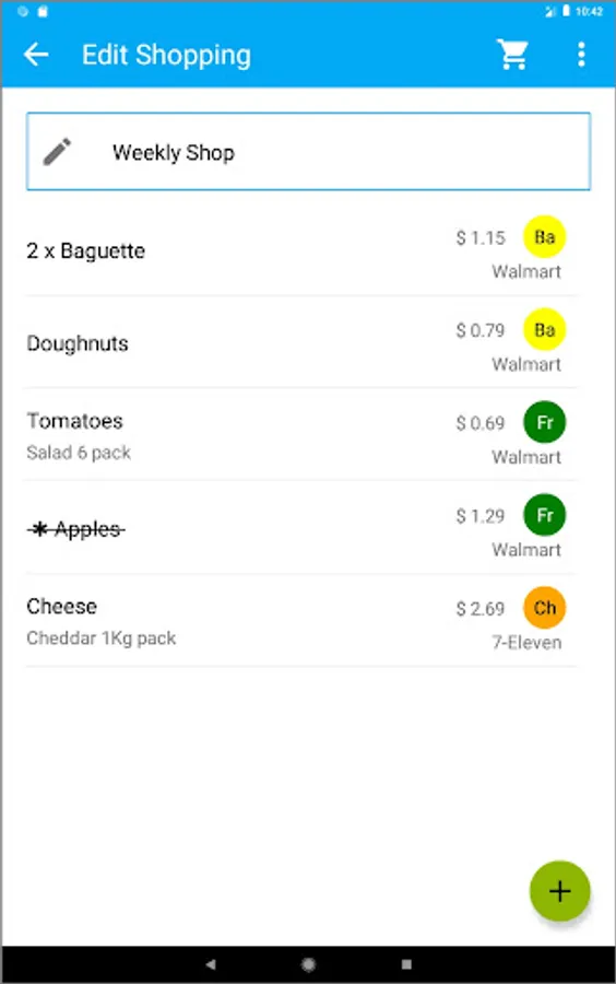 When you've been shopping, simply update any item price changes and the app will remember the next time you add those items.