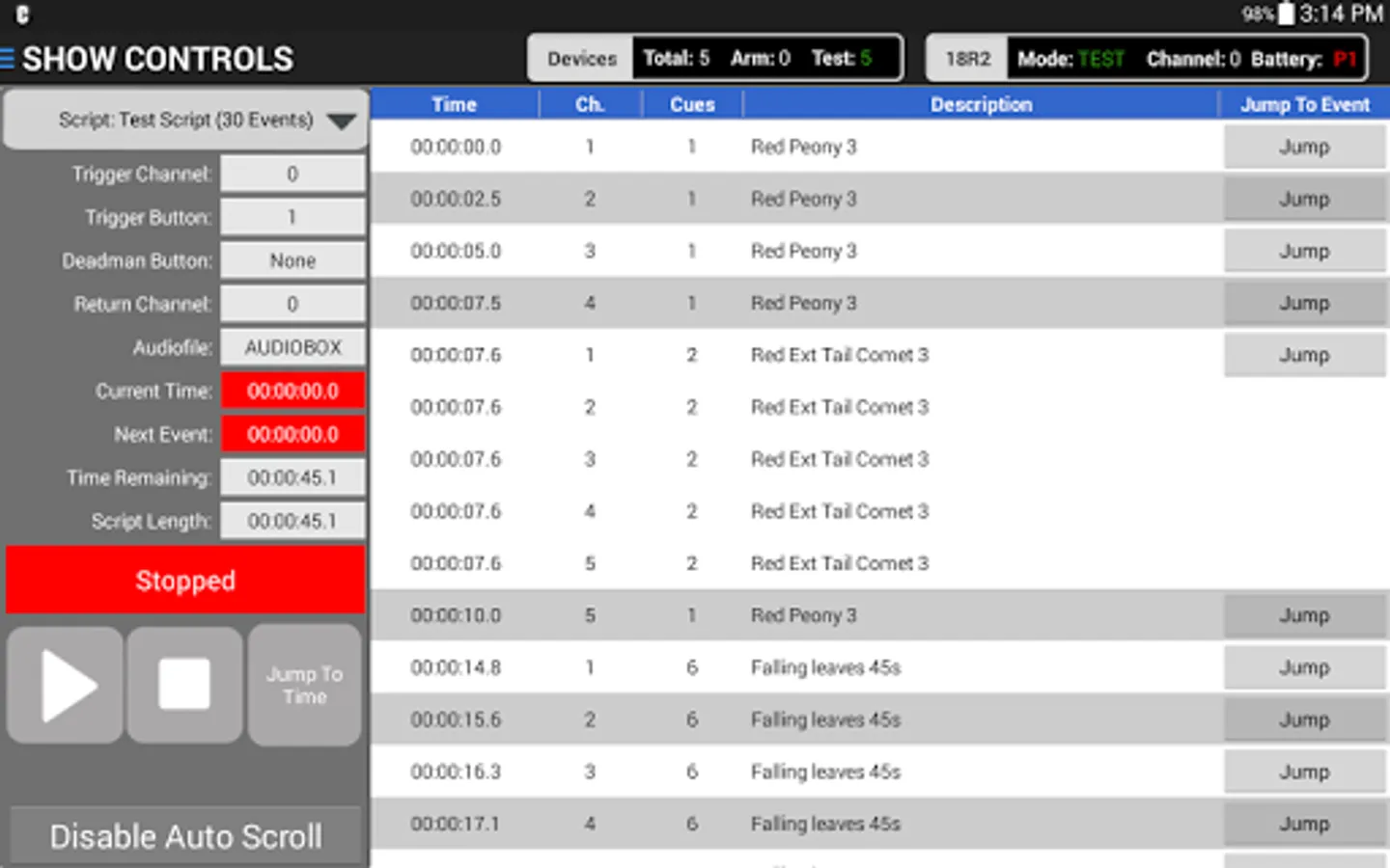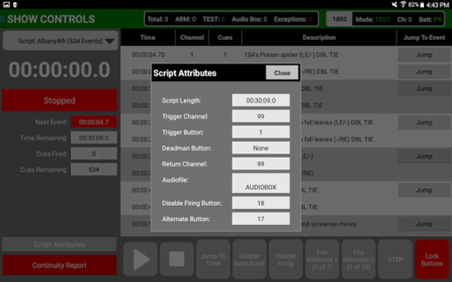 Show Controls - View and execute both timed event and STEP scripts with a visual listing of events fired in real-time along with controls for playing, pausing, disable firing, alternate firing and more...