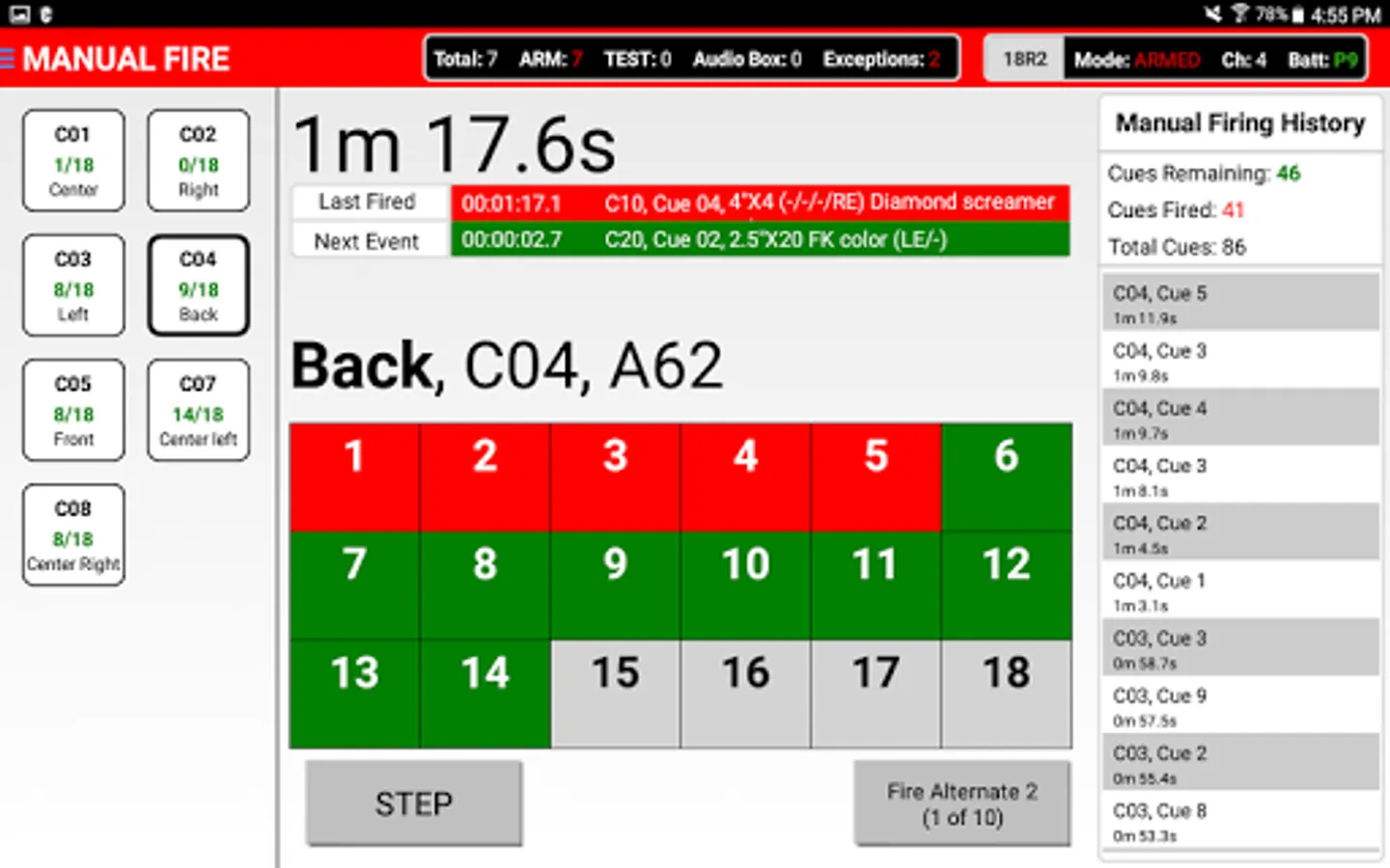 Manual Firing - A complete UI for manually fired shows. Include a show clock, firing history, and the ability to label cues with defined calibers and cakes.