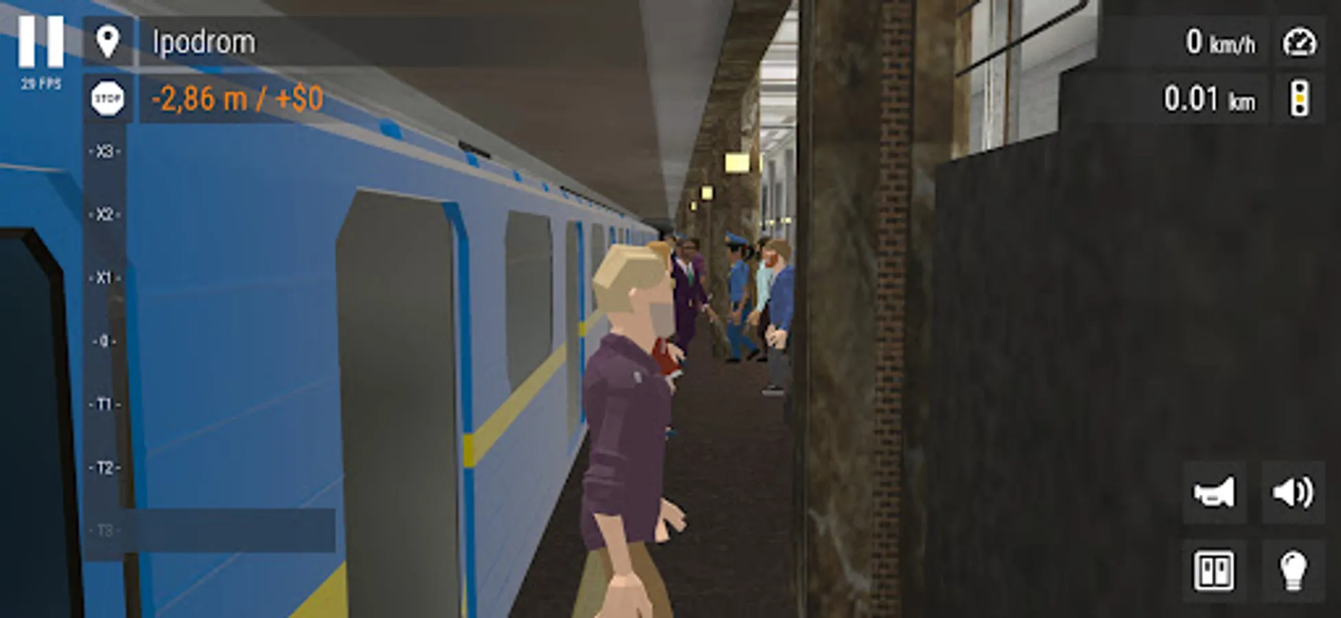You'll operate from a real cab with buttons, levers, and indicators. The main thing is not to get confused. In the beginning, you will be given a starter training driving on the railroad and how to use all the functions of the simulator. The training takes place at subway university. You will be able to open and close doors in station, fine-tune transport stops and starts, and record the distance to the station checkpoint. Your main task is to carry the real passengers waiting for you at the station in simulater.