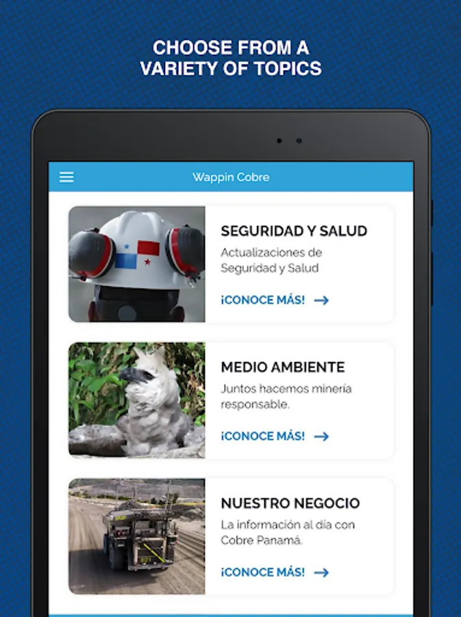 The Wappin Cobre app is the best way to stay connected with everyone in Cobre Panama. Get all the latest updates and important notices from Cobre Panama at your fingertips!