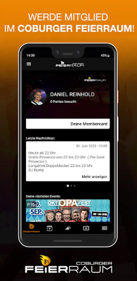 Download our app and become a member of the Coburg celebration room.