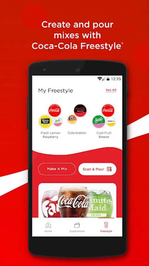 - Create your own custom beverage mixes and pour from any Coca-Cola Freestyle® machine.