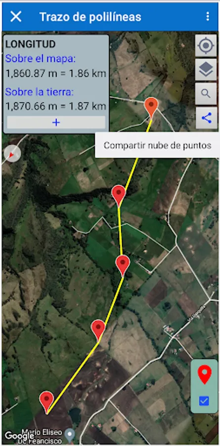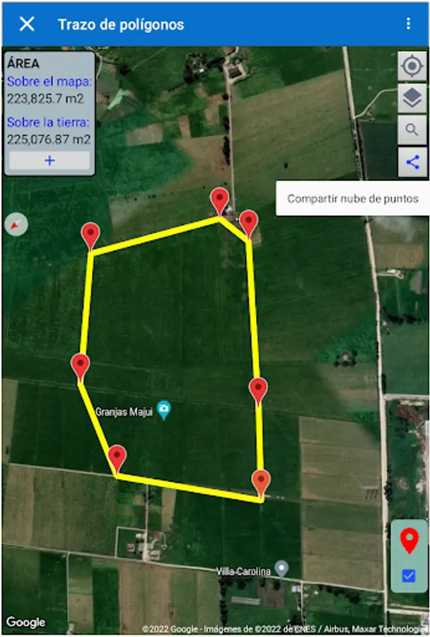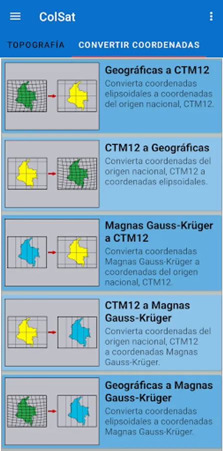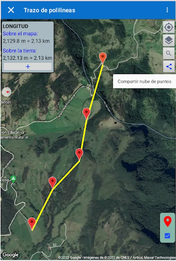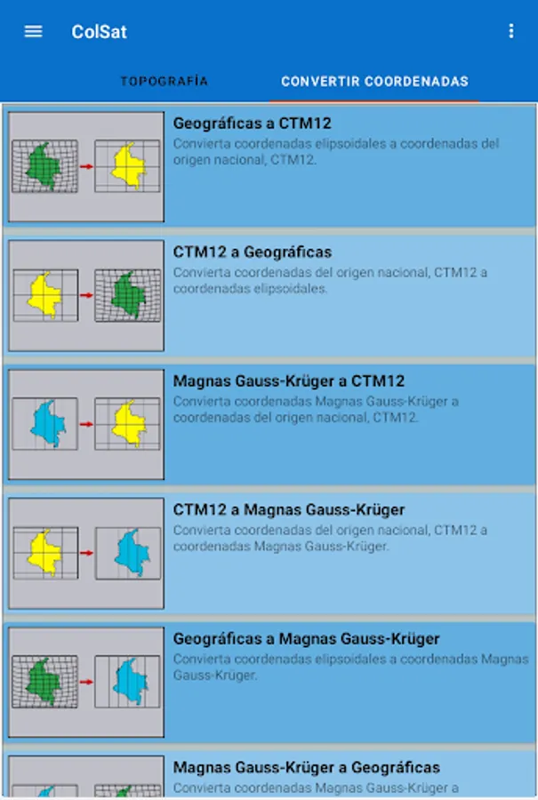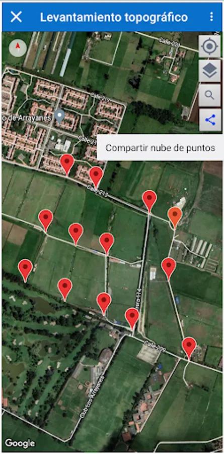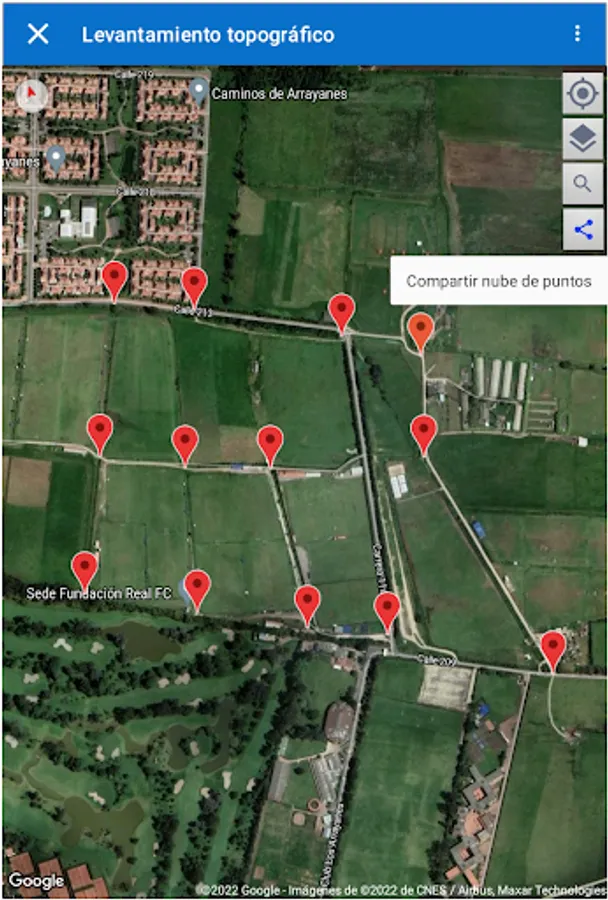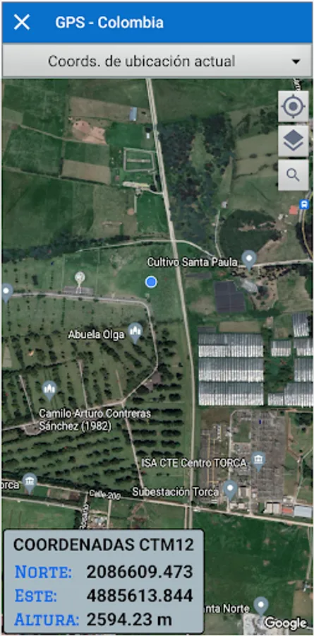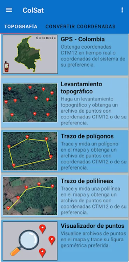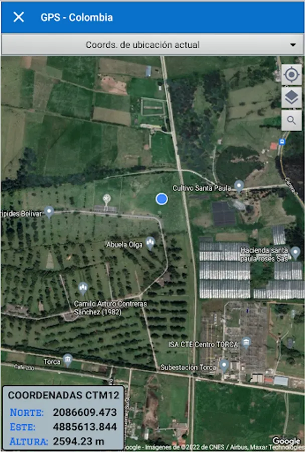 Do topographic surveys on the provided maps without using total station and obtain a point file (PENZD) with coordinates of the CTM12 national origin or with Gauss-Krüger coordinates, required in Colombia and automatically save them online for later access at any time and from any part of the world.