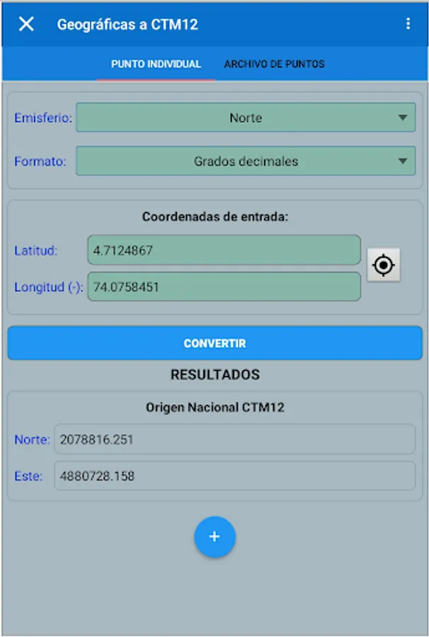 In addition, use your device as a GPS to obtain real-time coordinates of the CTM12 national origin or Gauss-Krüger coordinates