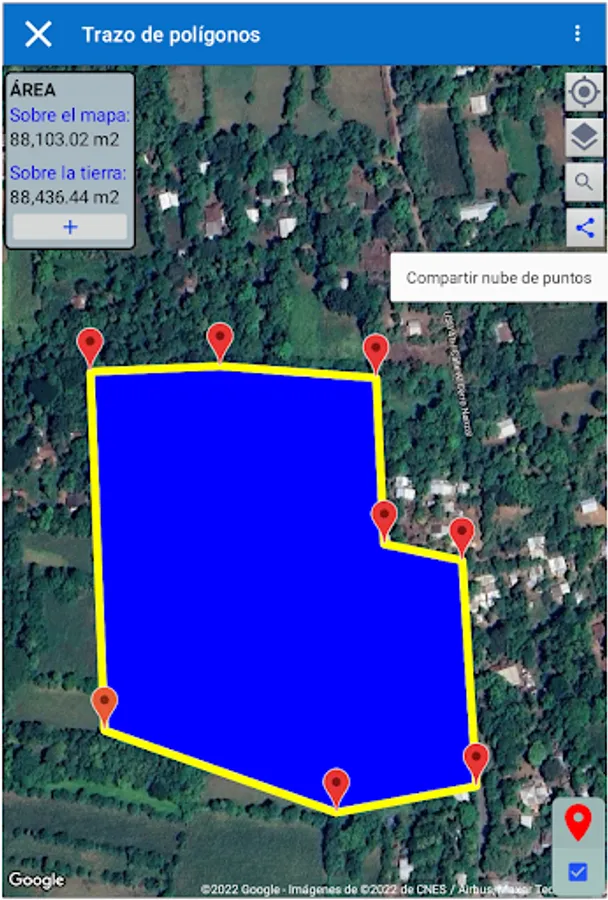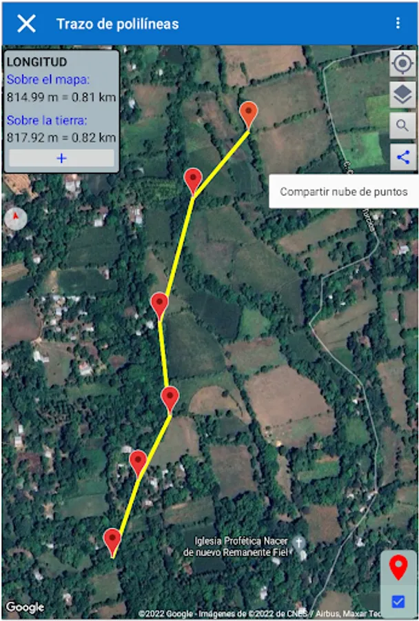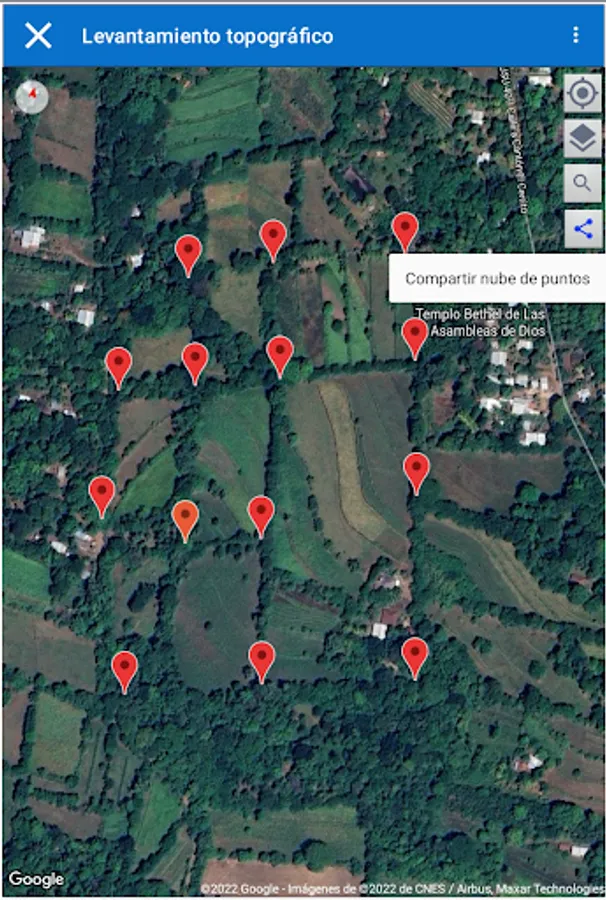 Make topographic surveys on the provided maps without using a total station and obtain a point file (PENZD) with coordinates in Lambert format (SIRGAS2007, El Salvador), required by the CNR and save them automatically online for later access at any time and from any location. part of the world.