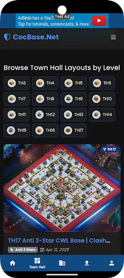 Our app offers a wide collection of base layouts for every Town Hall level, from TH3 to TH17. Whether you're just starting or looking for TH17 layouts that fit the current meta, we provide designs for popular levels like TH11, TH12, TH13, TH14, TH15 and TH16. We also cover Builder Hall layouts from BH3 to BH10, including BH9 and below, ensuring designs for all game stages.