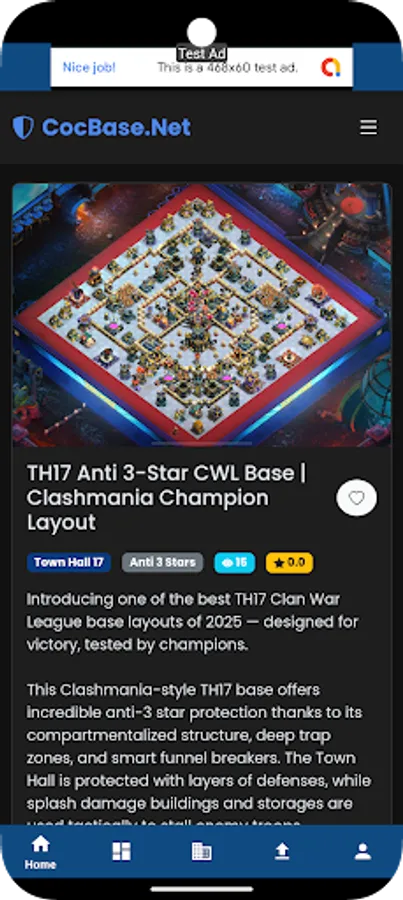 Stop wasting hours searching for the perfect Clash of Clans base! The CocBaseNET app is your all-in-one resource and community hub for thousands of the best, tested, and regularly updated Clash of Clans base layouts. Whether you're a beginner or a seasoned veteran, find exactly what you need to dominate your gameplay!