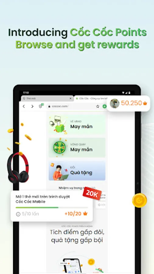 - Earn Points - Exchange Gifts: Earn Cốc Cốc Points for your daily browsing activities. Redeem points to exchange gifts or join interesting games with valuable rewards.