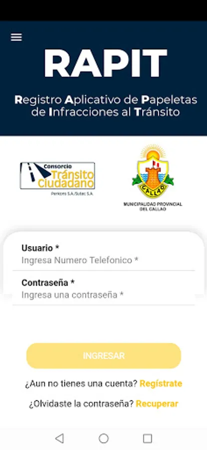 Application developed by the MUNICIPALITY OF CALLAO and the CONSORTIUM TRANSITO CIUDADANO, to encourage citizen participation in reporting incidents on public roads easily and in real time.
