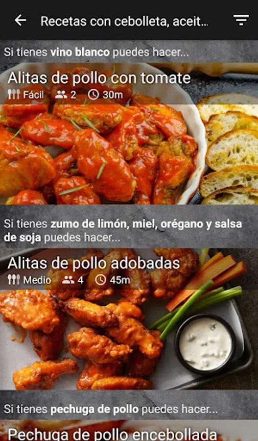 Download the app and enter the ingredients: types of meat, spices, fruits, vegetables, liquors ... and we will give you a list of recipes that you can cook. So fast and simple!