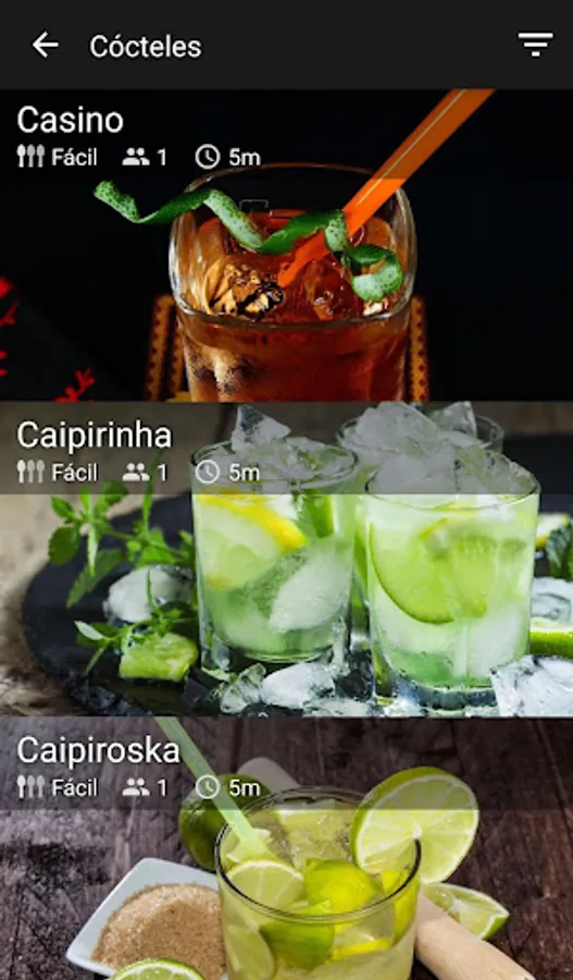If you prefer, you can also search by categories where you can find meats, salads, cocktails, desserts, smoothies, Asian food, seafood, fish and many more.