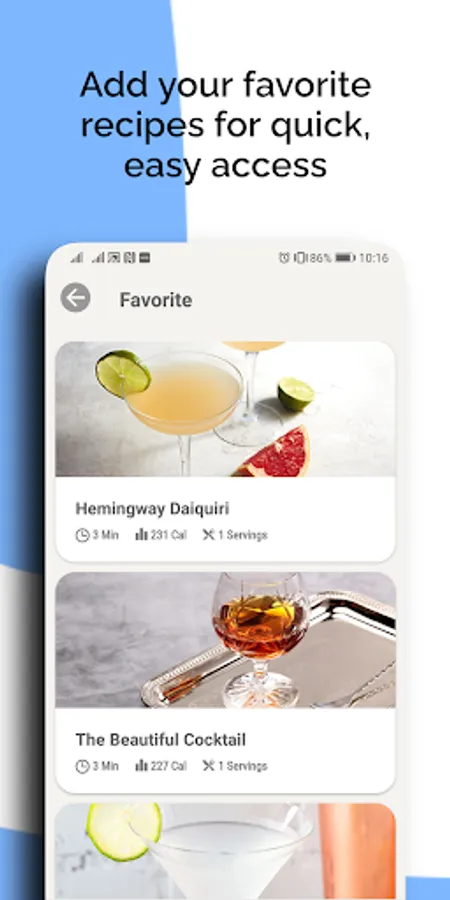 Save your favorite drinks recipe to the app's favorites area. You can use the saved drinks and cocktails offline. You can also make bar drinks recipe collections based on blended fruits and lemonade recipes. You can also have cocktails like bloody marys, champagne mix, cosmopolitans, hurricanes, bourbon drinks, daiquiris, margaritas, tequila, vodka, whiskey, drinks flavoring, etc.