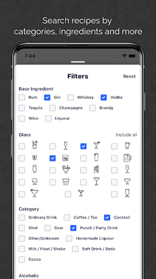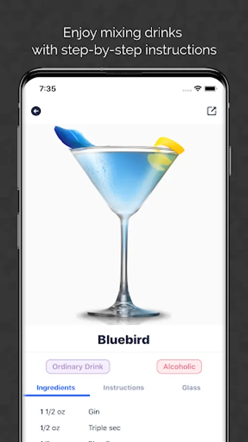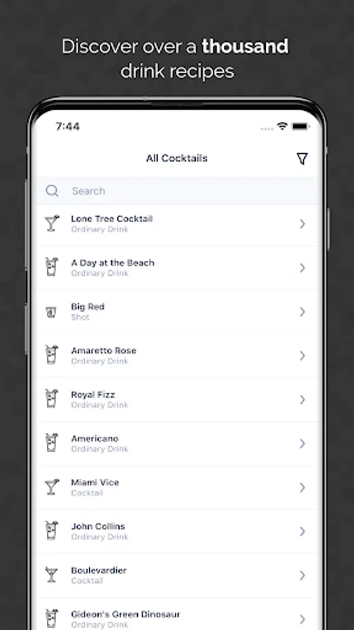 - Search thousands of recipes by categories, glass types, base ingredients and more