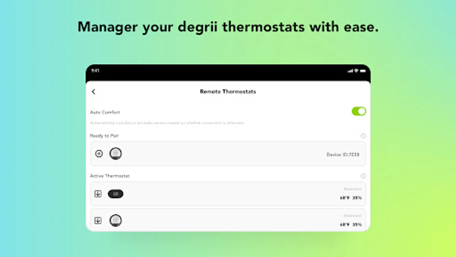 Degrii learns based on your needs and preferences to provide comfort, energy savings and convenience for your family. Enjoy your comfort and let us do all the hard work for you. We update the app regularly to include newly released features and enhancements.