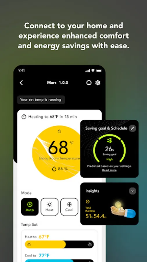 - Change the temperature from anywhere across the globe or the sofa using your smartphone.