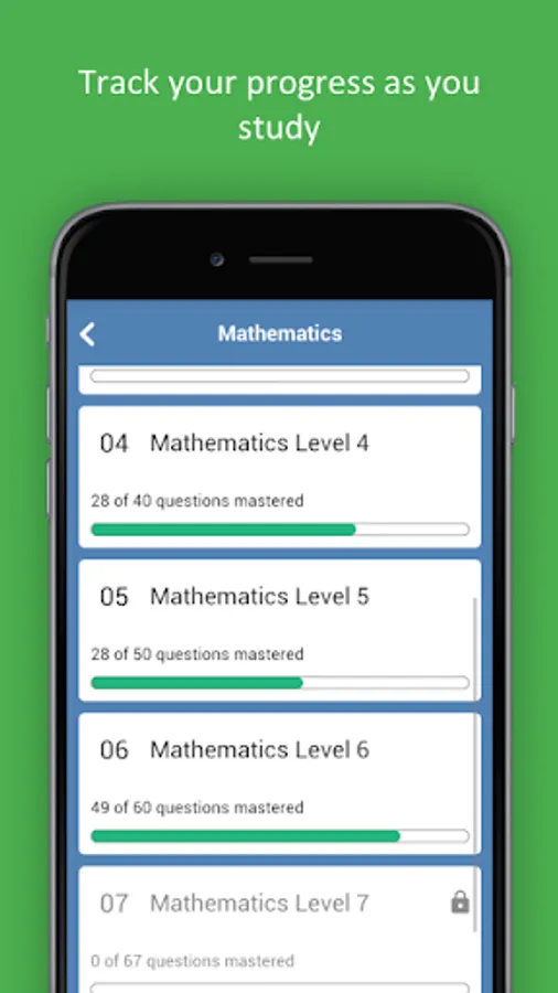 - Track and monitor your progress. Analyse your performance and find out when you have reached test standard.