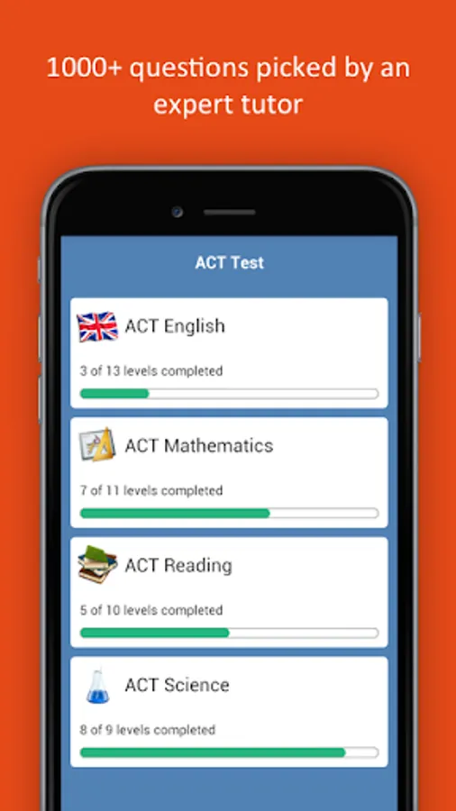 ACT Practice Test provides many training questions for people who want to take a test and pass ACT Exam. We take each exam and break it down into knowledge areas so that you can filter your study sessions based on your needs.