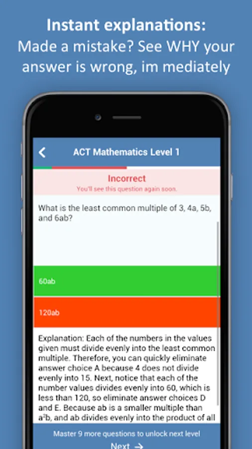 - Detailed explanations: When you make a mistake, the app tells you right away if your answer is wrong and why. You understand and remember every wrong answer.