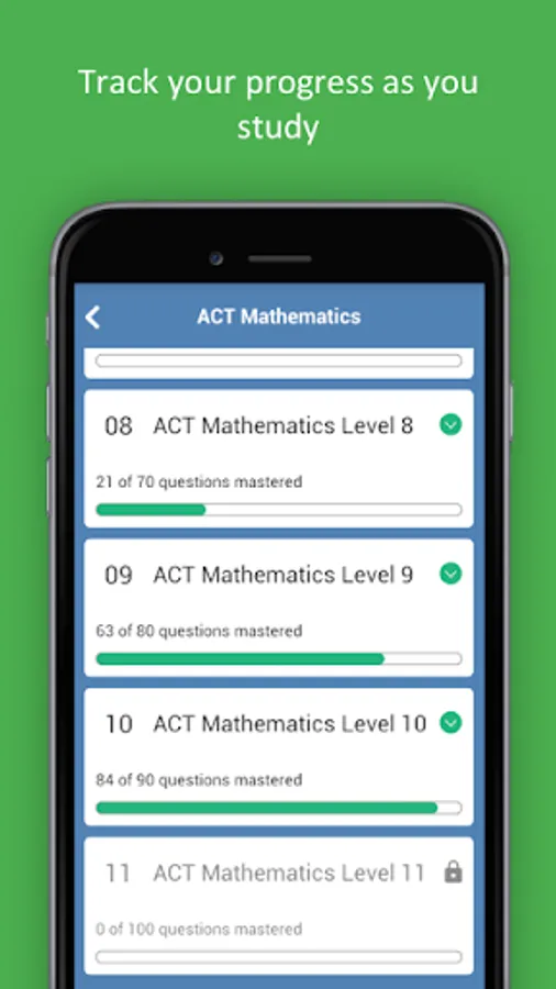 - Track and monitor your progress. Analyse your performance and find out when you have reached test standard.