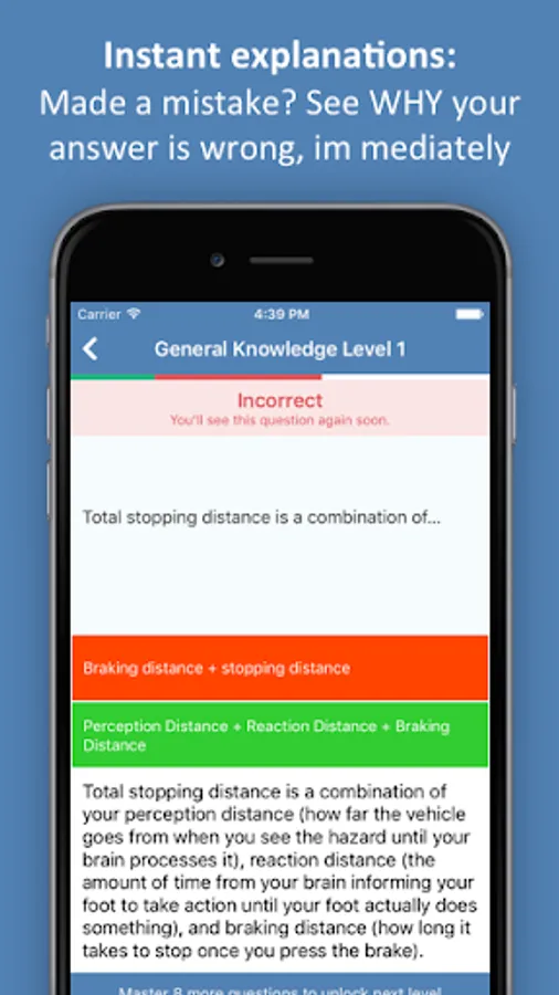 - Detailed explanations: When you make a mistake, the app tells you right away if your answer is wrong and why. You understand and remember every wrong answer.