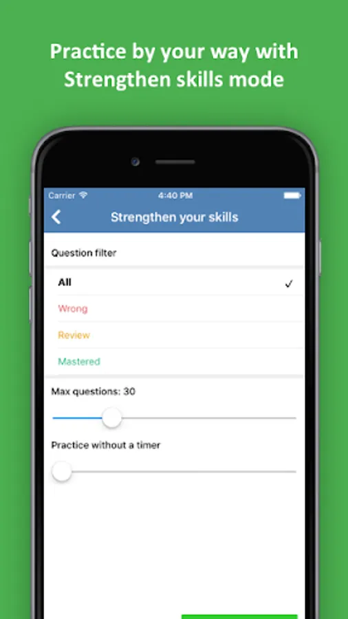 - New questions every time: To keep you focused, we randomize questions and answers each time you start a practice test.