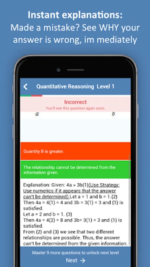 - Detailed explanations: When you make a mistake, the app tells you right away if your answer is wrong and why. You understand and remember every wrong answer.