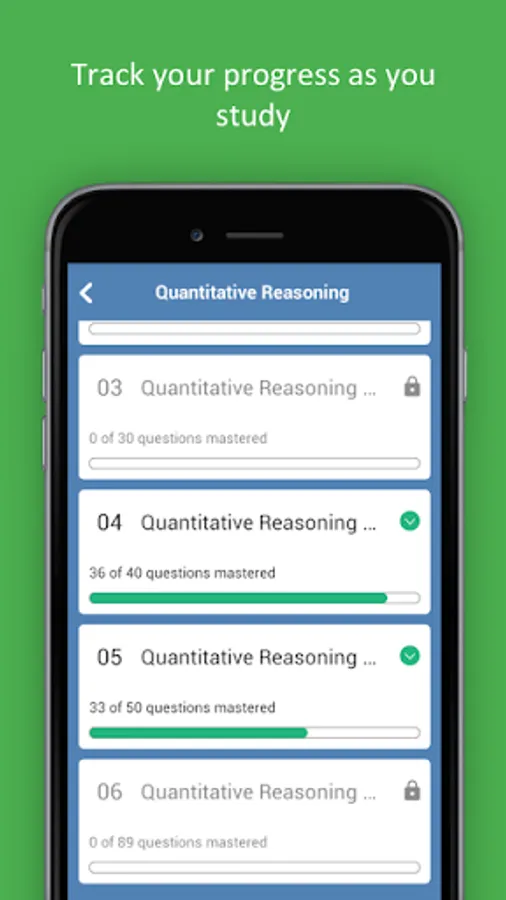 - Track and monitor your progress. Analyse your performance and find out when you have reached test standard.