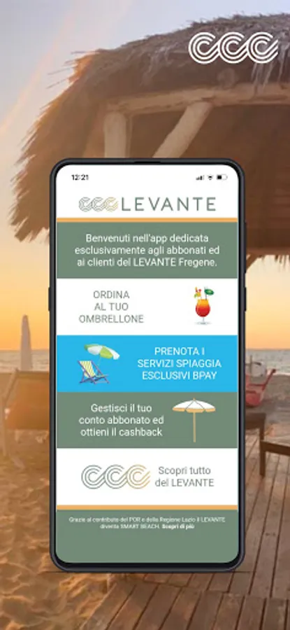 Official App of the LEVANTE Fregene factory dedicated to subscribers. By downloading it it will be possible to take advantage of all the services tailored to our guests: booking umbrellas and equipment, free space to benefit from cashback, sports area rental, participation in activities, registration for the summer center, food & beverage service directly under the umbrella.