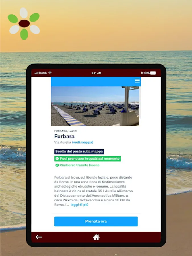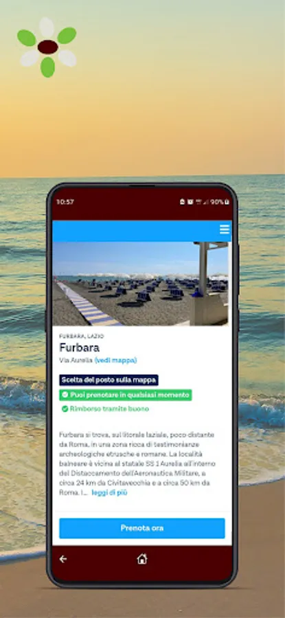 Download the Mares app and easily book a place on the beach for Lido Furbara or Lido Santa Severa.