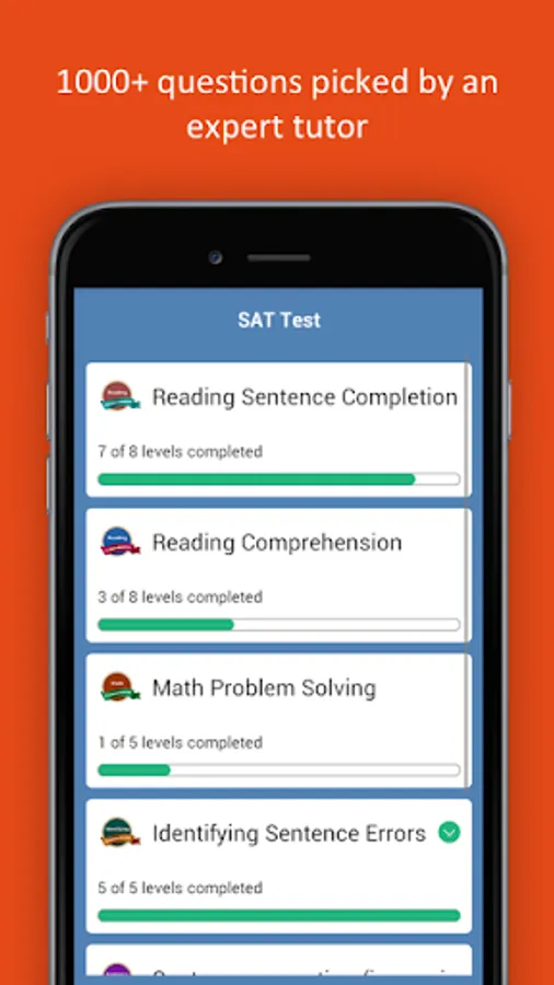 SAT Practice Test provides many training questions for people who want to take a test and pass SAT Exam. We take each exam and break it down into knowledge areas so that you can filter your study sessions based on your needs.