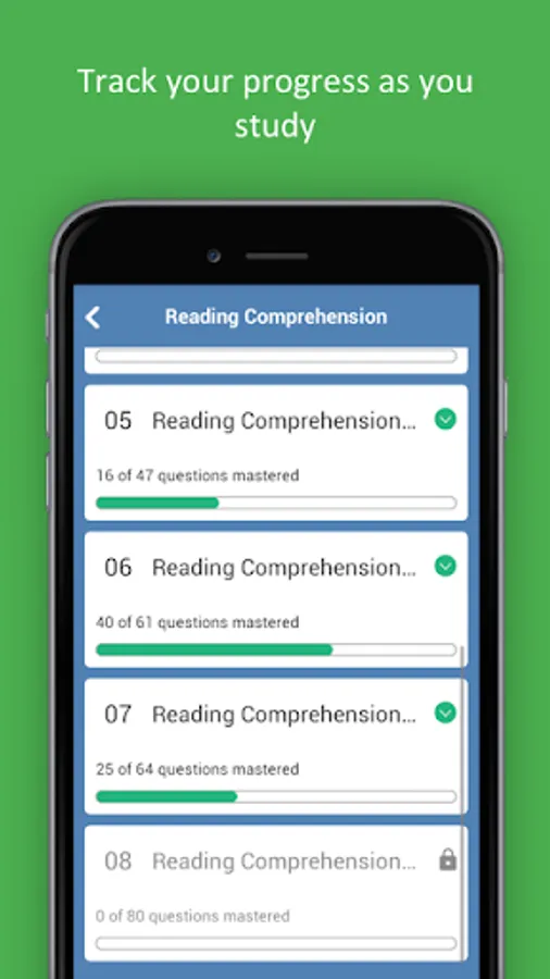 - Track and monitor your progress. Analyse your performance and find out when you have reached test standard.