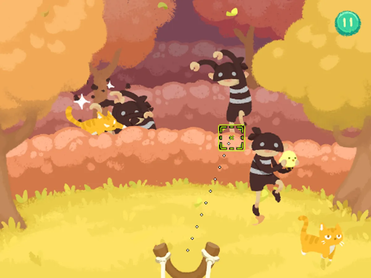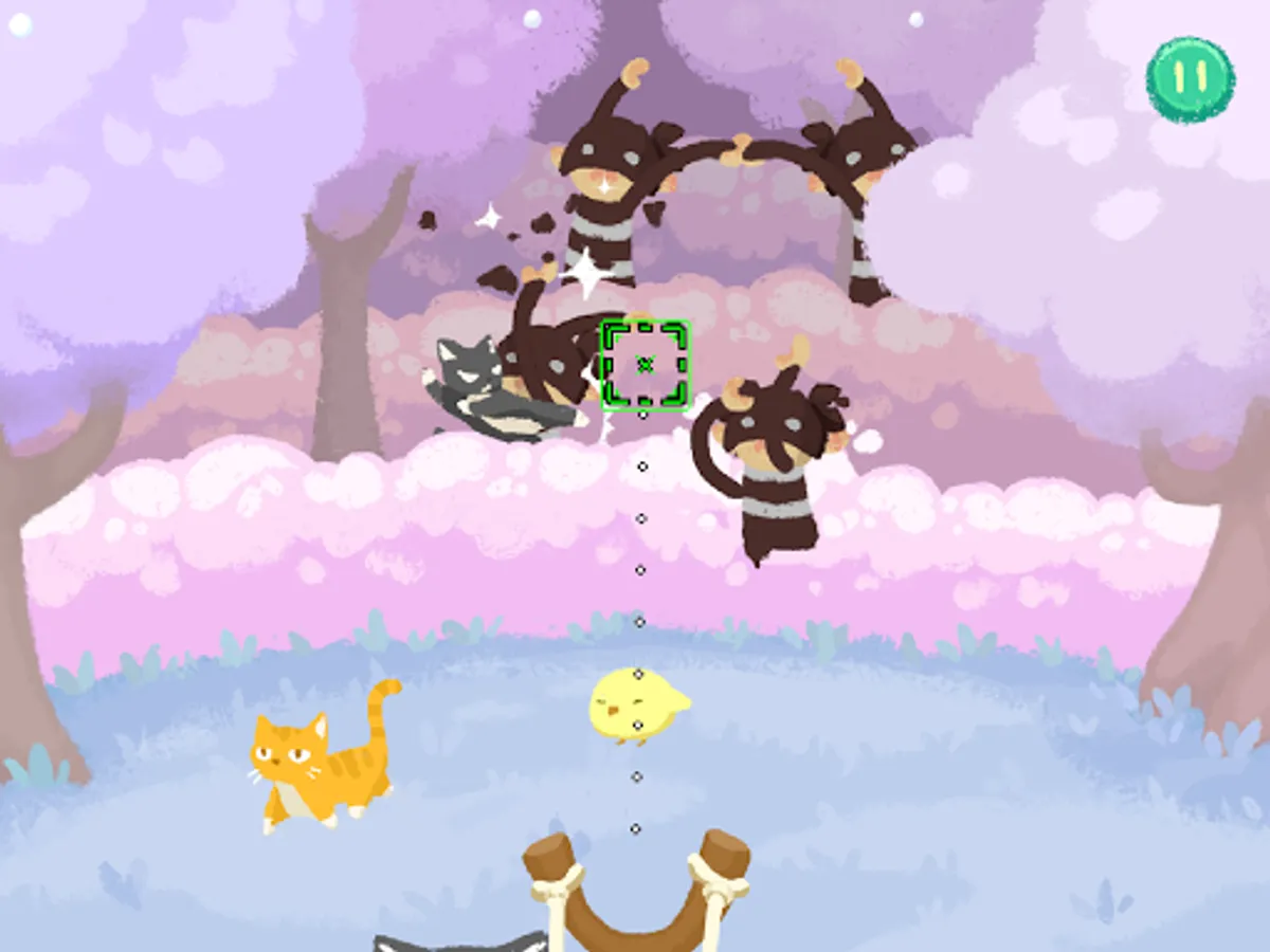 Launch meowmies with your slingshot to stop the birdie burglars!
