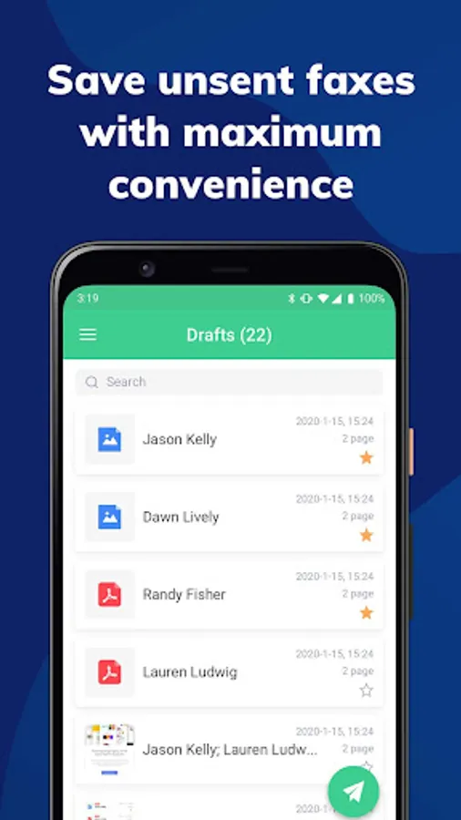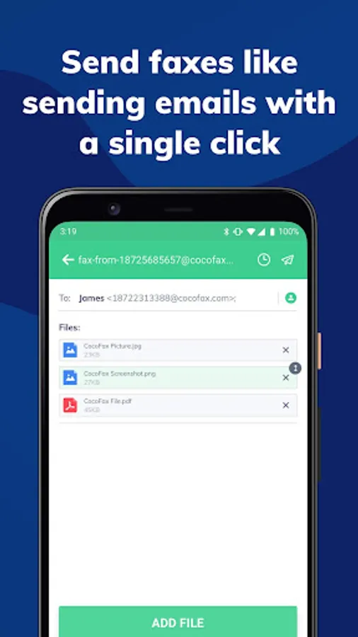 Send fax from phone: CocoFax literally transforms your smartphone into a portable fax machine, encrypting your private data to a maximum. Unlike the bulky fax machine, you only need a stable internet connection to start faxing with CocoFax. Not only saving you headaches concerning missed faxes, it also helps you chop off massive spending in office rentals and fax machine maintenance.