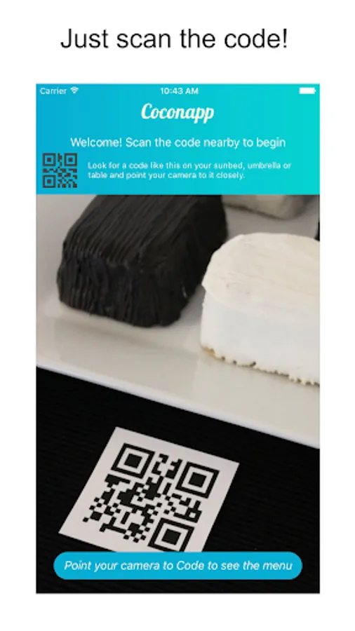2- Scan the Coconapp code next to you (on your table, bistro, umbrella),