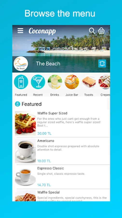 Coconapp is the app that lets you order drinks and food instantly to your side.
