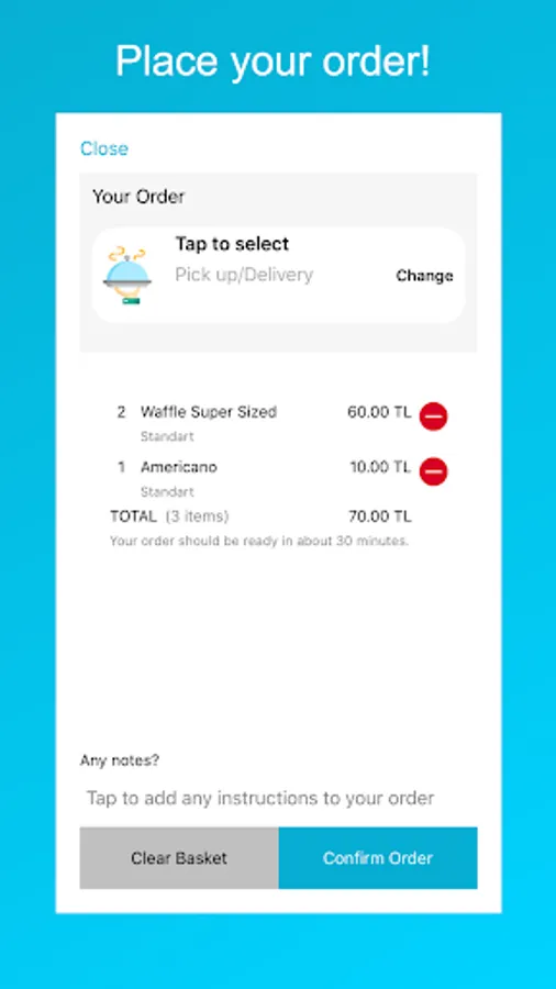 Your order will arrive in minutes.