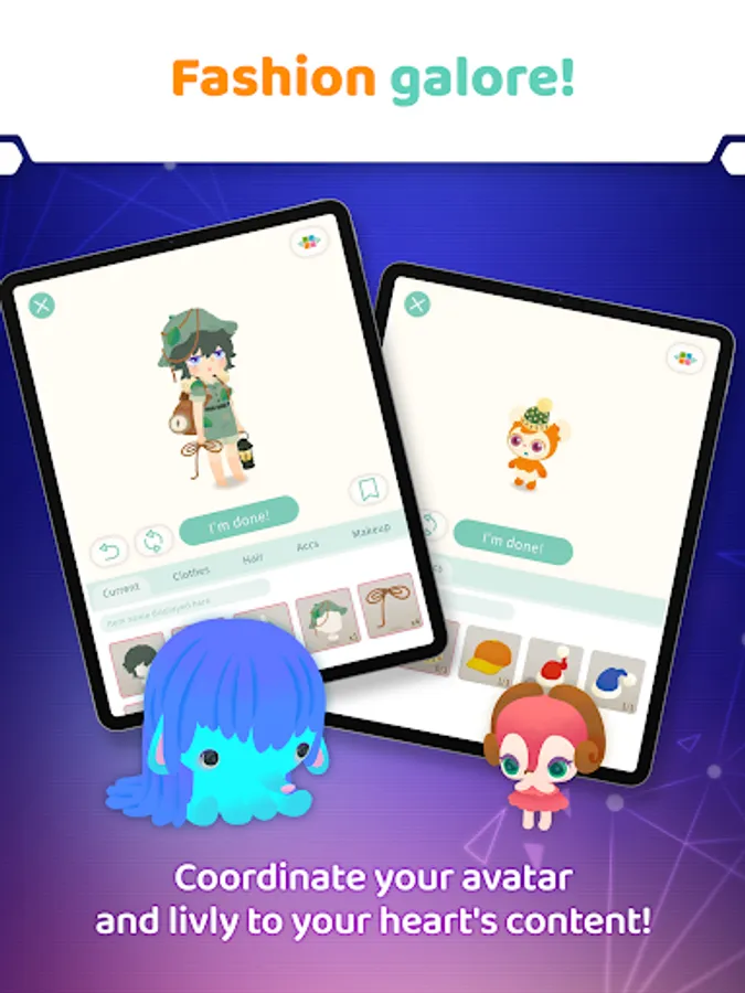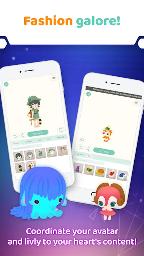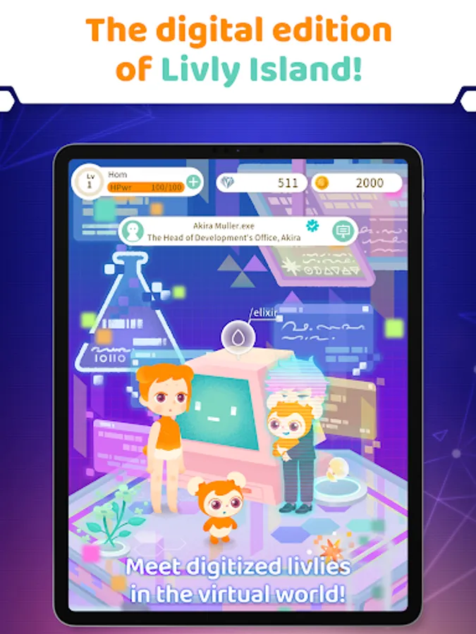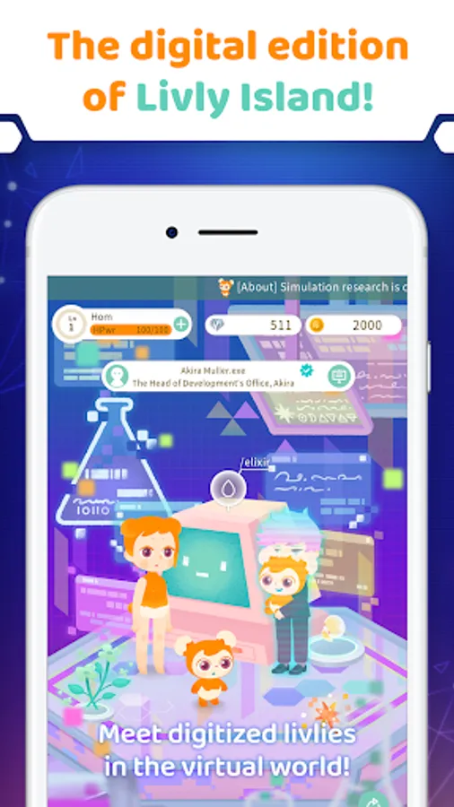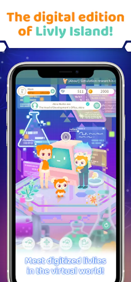 Participate in fun data simulation in the virtual space provided by the D.D.O. by taking care of your digital pet livly based on your preference and coordinating your avatar hom and island to your liking!