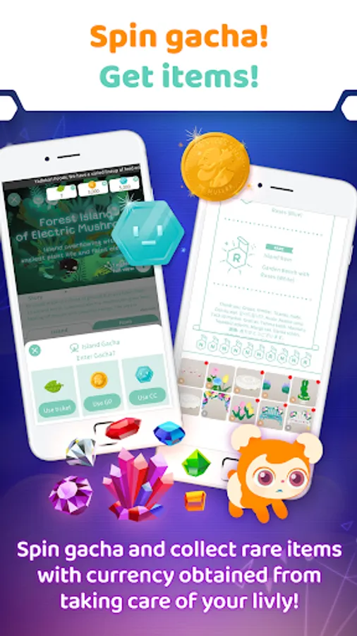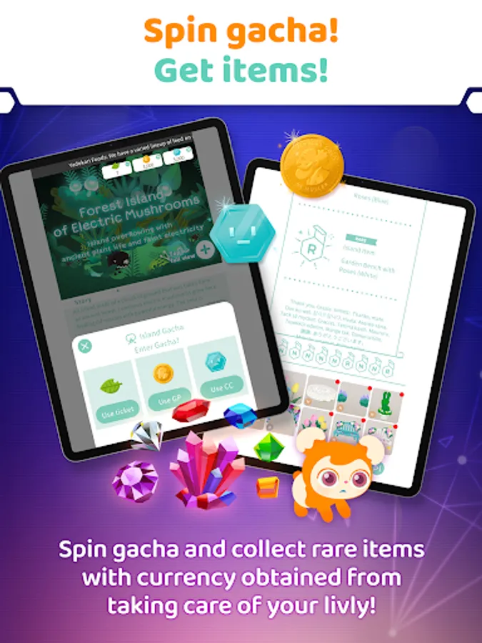 Your livly’s color changes based on the bug it eats. Feed your digital pet livly and change the color to your liking as part of the simulation. The best part is that livlies poop jewels which you can use to buy items at the shop!