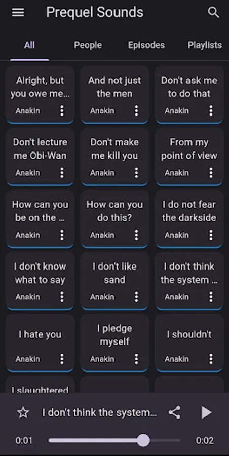 Welcome to the ultimate collection of the most iconic quotes from the prequel! This app is designed to give you access to more than 100 unique meme soundbites.