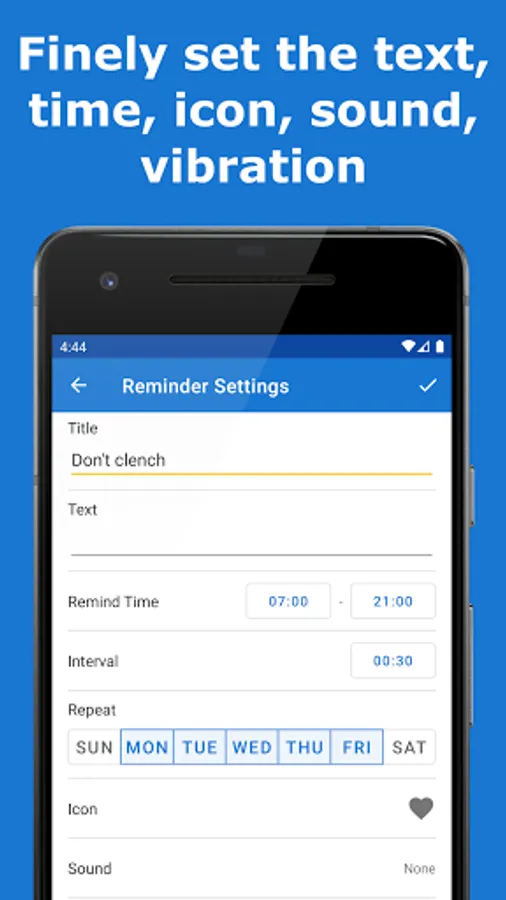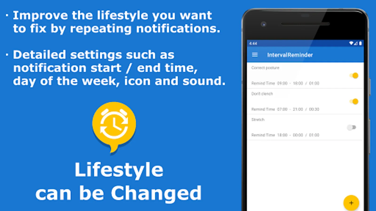 - You can improve the habit that you tend to forget by notifying you only at a fixed time on a specified day of the week.
