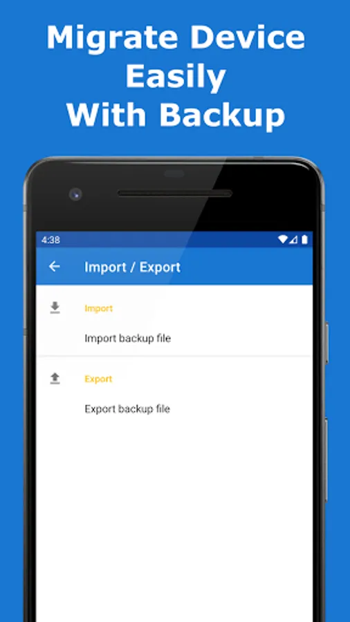 - Transfer your settings easily to other device via backup file saved in Cloud Storage.