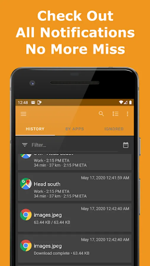 - Simply enable "Past Notification" in "System settings / Access Notification", then the app start to recording notification histories.