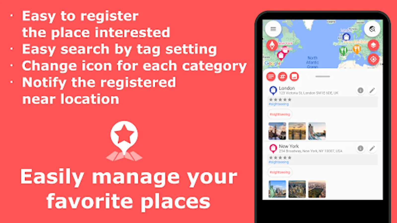- Since you can register tags to your favorite places, you can easily search by registering various tags.