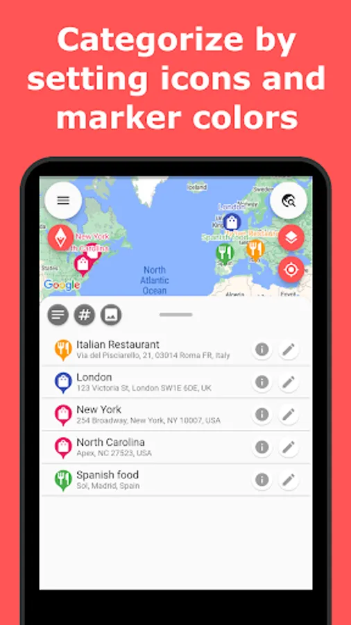 - You can change icons and the color of markers for each favorite place, making it easy to search from the map.
