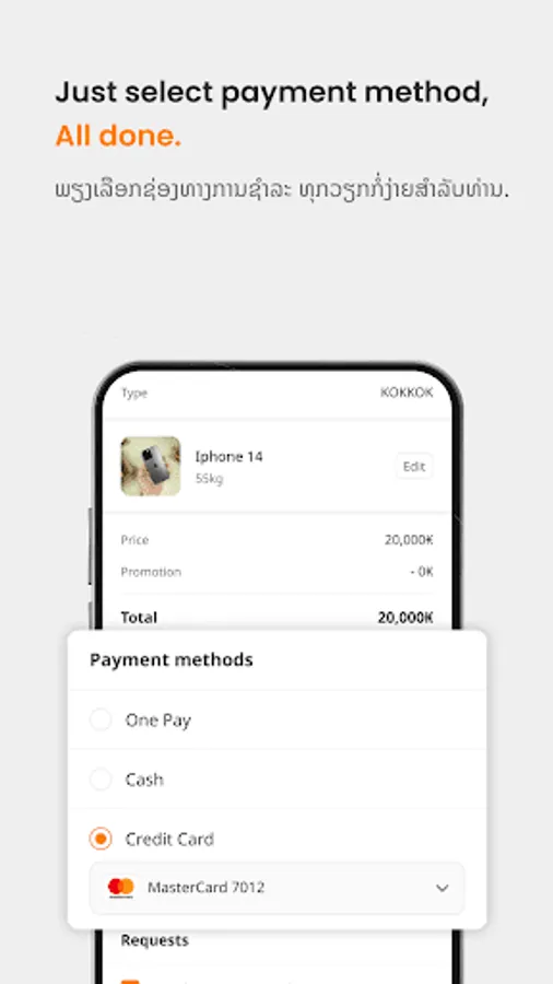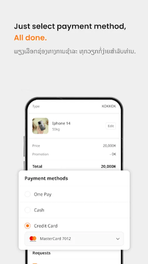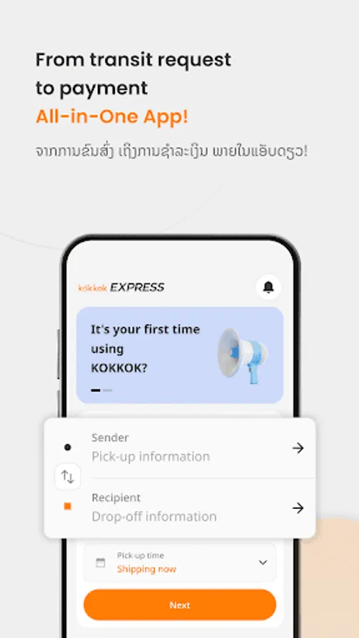 - Kokkok service(in-city service): Door-to-door instant delivery service
