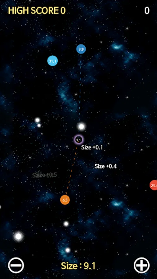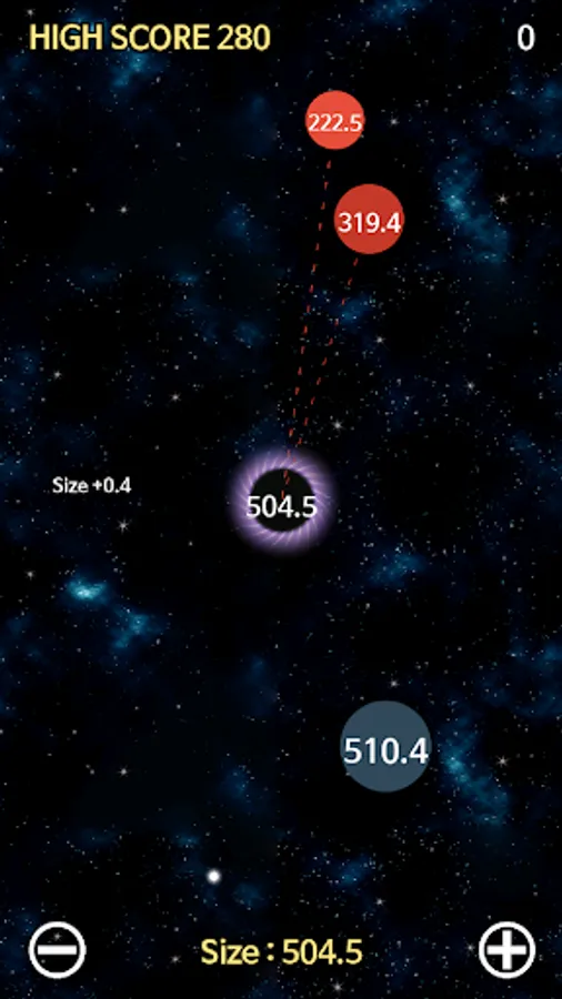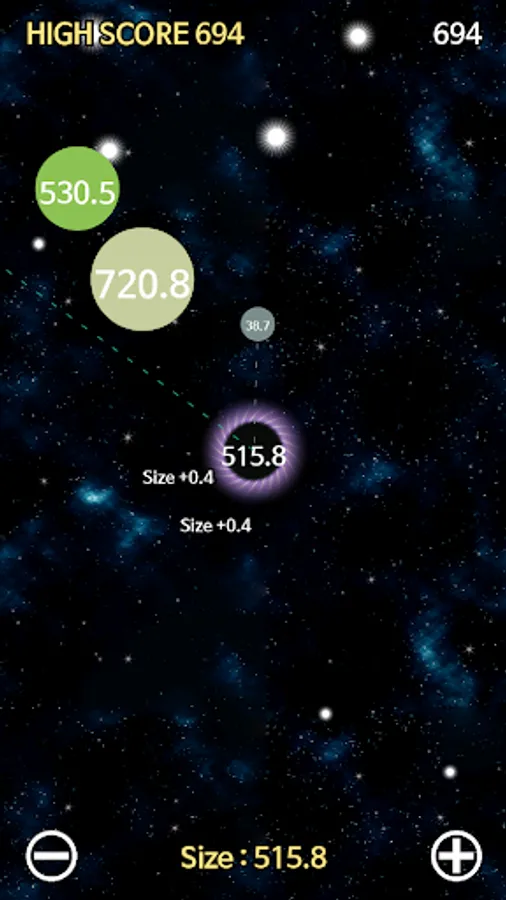 Black Hole Growing Game is a game that aims to survive for as long as possible while absorbing smaller planets than black hole and avoiding bigger planets than black hole making black hole bigger based on black hole theory.