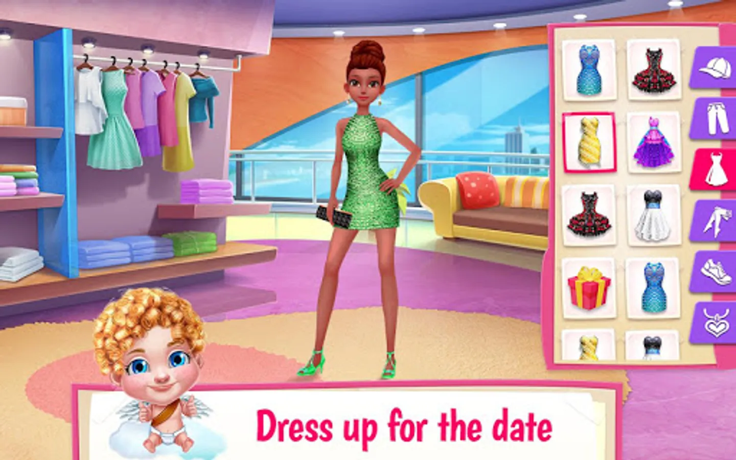 Smack! That’s the sound of tons of new guys and girls experiencing their first kiss - thanks to you, you suave little Cupid, you. In this love story game, you get to be a matchmaking angel and help people fall in love like a boss. Dress up your customers and give them makeovers at the salon, dance classes, kissing training - anything to make sure they’ll end their date with a true love’s kiss.